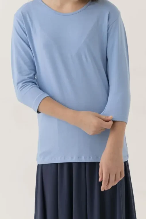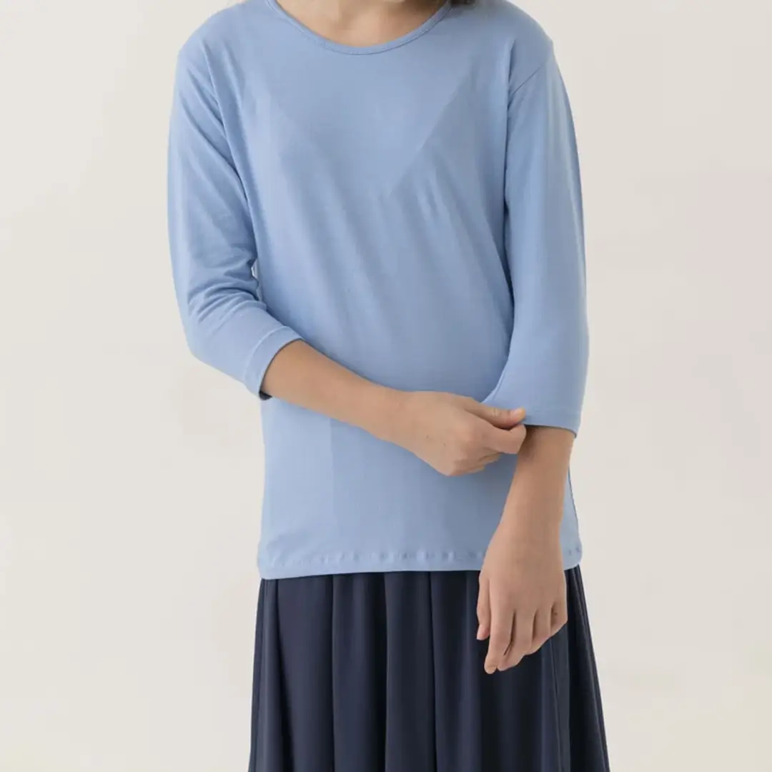חולצת לייקרה ילדות צווארון עגול שרוול 3/4