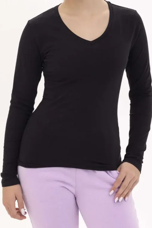 חולצת לייקרה ילדות צווארון V שרוול ארוך